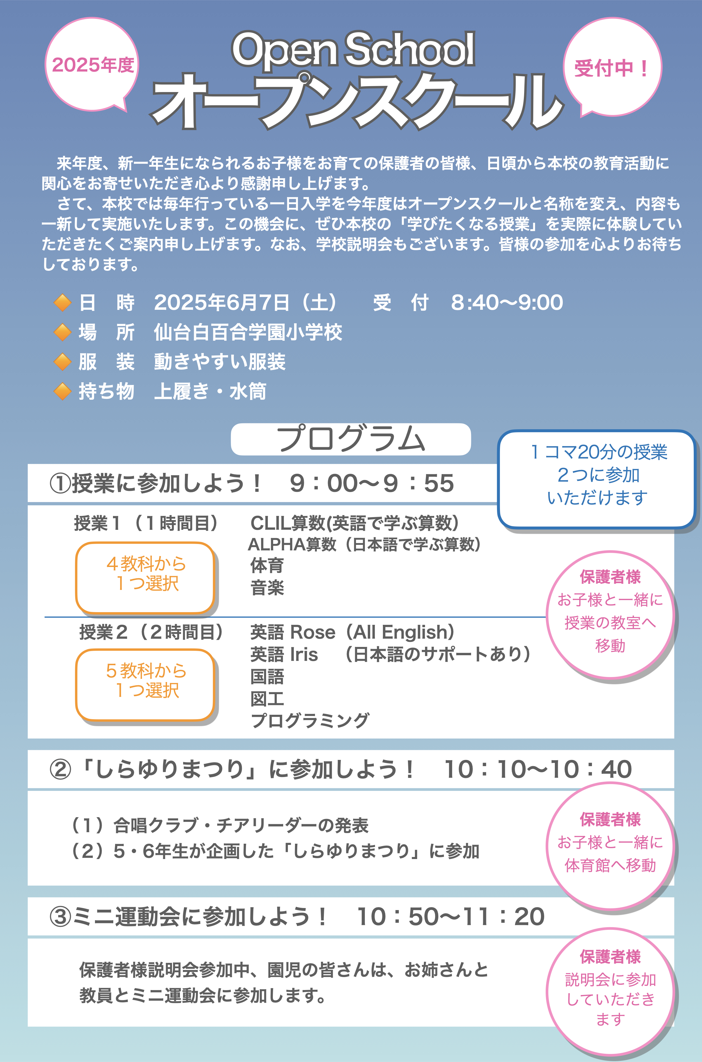 2025年度のオープンスクールは、終了しました。