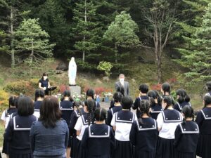 本校の「ルルドのマリア像」前で行われました。