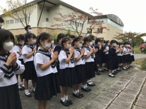 1・2年生も、オンラインではない「祈りの集い」は、はじめての経験。