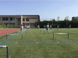 5年生いい天気の中、ハードルの練習。