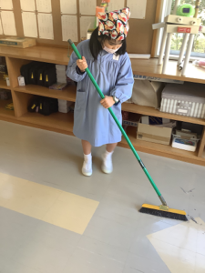 ずっと6年生が1年生の教室を掃除してくれていましたが今では1年生が自分たちで掃除をしています。