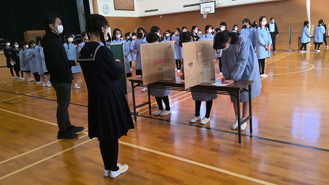 本校を引っ張っていく白百合会新役員決めの為、白百合立会演説会、学年間投票が行われました。