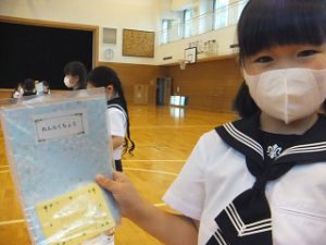 6年生から1年生への初めてのプレゼントです。今の6年生も、1年生の時にもらった手作りの連絡帳カバーを大切に使っています。