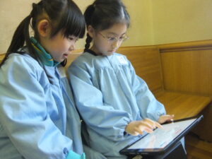 「ここは、図書室です。静かに本を読んでくださいね。」とか説明しているのかな。 学校探検が済むと、1年生の行動範囲もどんどん増えていきます。