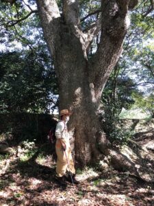 途中、このあたりで一番の古木といわれる「タブノキ」