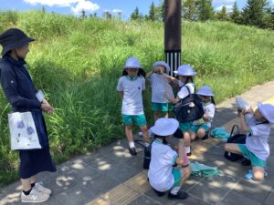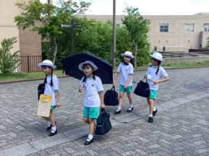 今日は、町探検のコースの下見です。今年一番の暑さにちょっと心配。