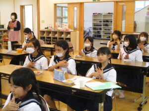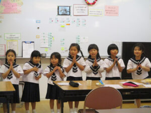 先生の前でしっかりお祈りをしました。