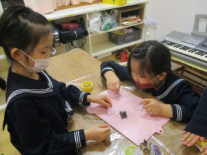 型をつかって遊んでる子もいます。
