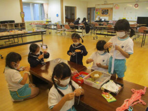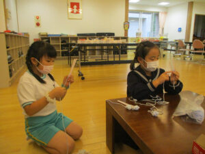 3本のストローに毛糸を巻き付けて作ります。
