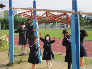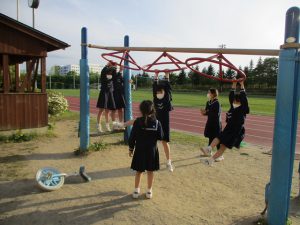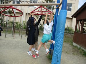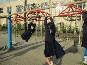 回転式うんていにつかまりクルクル回ります。