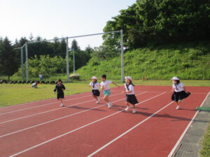 運動会前に徒競走の練習をしていました。