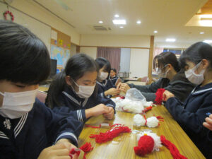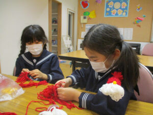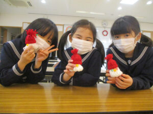 毛糸でサンタを作りました。