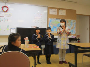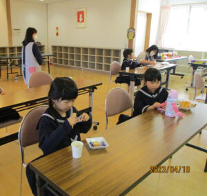 たくさん遊んだ後はお祈りをしておやつを食べます。